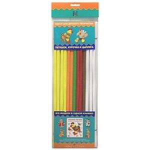 В набор входят 78 полосок гофрокартона трех цветов - белого, желтого и коричневого размером 50х1 см и пластиковые глазки.