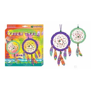 Декор для дома 'Яркие сны' - красочное воздушное изделие из пряжи, нитей, бусин и бумаги. Индейские легенды гласят: если повесить 'ловца' у изголовья кровати, он будет пропускать только хорошие и яркие сны, а плохие и злые - задерживать в своей паутинке. Плетение 'ловца' успокаивает и снимает стресс. Для облегчения создания этого чуда, мы придумали круг с выемками для намотки нитей, подобрали интересные цветовые сочетания разных материалов. В наборе нет настоящих перьев - нам жалко птиц, вместо них предлагаем сделать яркие декоративные перья из бумаги! Насыщенные цвета пряжи и бумажных перьев этого набора придадут готовым изделиям выразительный вид, сделают их ярким пятном интерьера.