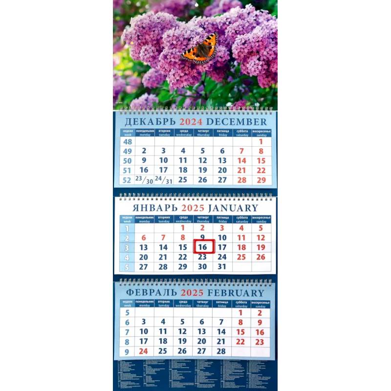 —Календарь квартальный на 2025 год Бабочка на сирени