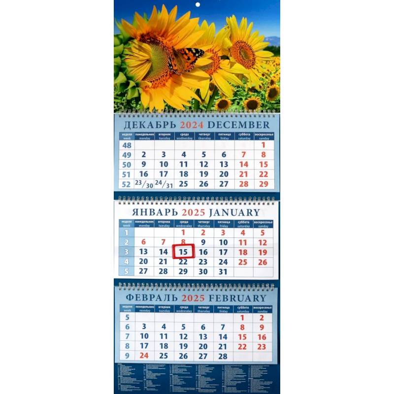 —Календарь квартальный на 2025 год Подсолнухи