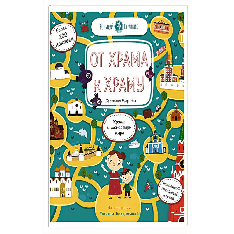 Книга Светланы Мироновой «От храма к храму» о том, как мальчик Серёжа с мамой путешествовали по Москве, Санкт-Петербургу и Псково-Печерскому монастырю. На страницах издания много лабиринтов и заданий, которые позволят путешествовать вместе с героями. А наклейки превратят чтение в увлекательное занятие, ведь самому участвовать в оформлении книги — это так интересно!