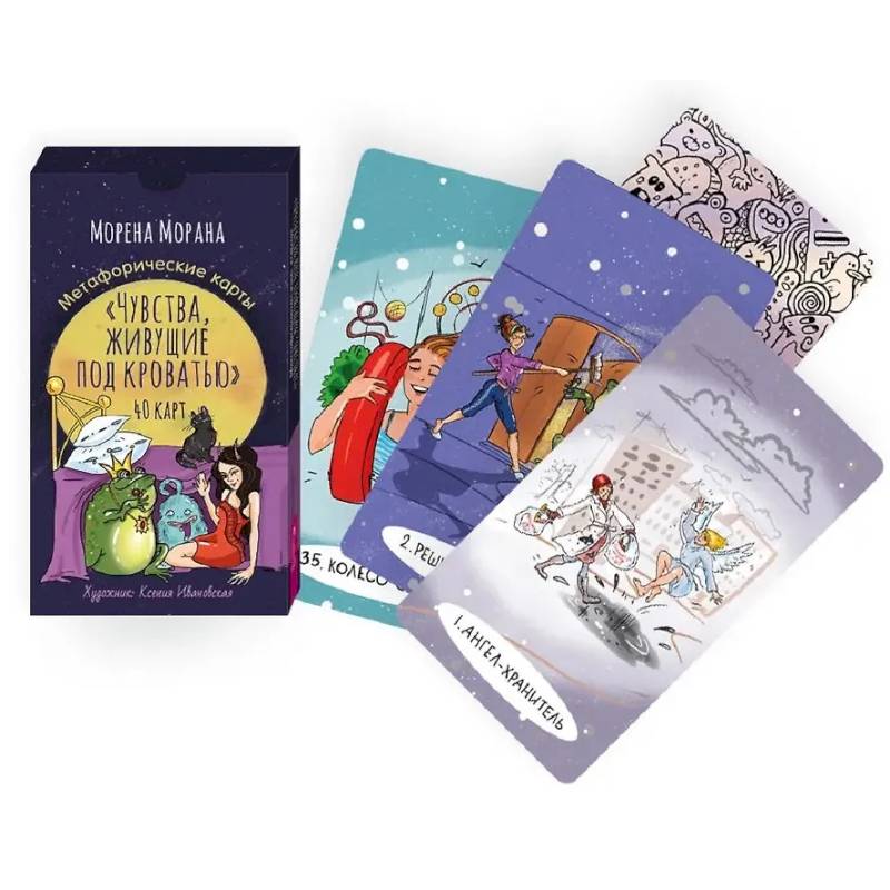 В каждой колоде — 48 уникальных метафорических карт с цитатами из романов Олега Роя, инструкция, советы по взаимодействию с картами и разные варианты раскладов.