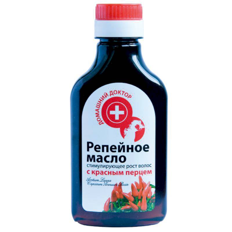Эффективное средство для укрепления и ускорения роста волос. Красный перец усиливает микроциркуляцию крови, способствуя быстрой доставке полезных компонентов репейника непосредственно к волосяным луковицам. Волосы начинают интенсивно расти, становятся гуще, сильне, приобретают блеск. [  ]Способ применения: репейное масло (теплое) нанести на корни волос, через 20-30 минут волосы промыть шампунем. Процедуру повторять 1-2 раза в неделю. Не допускать попадания в глаза. В случае попадания, промыть большим количеством воды.