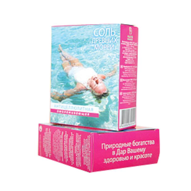 Соль «Древних морей» Антицеллюлитная улучшает микроциркуляцию крови, нормализует обмен веществ, способствует выведению шлаков и влаги. Букет эфирных масел и микроэлементов, входящих в состав соли, активно проникают в глубокие слои кожи и эффективно расщепляют подкожный жир. Антицеллюлитные солевые ванны способствую устранению «апельсиновой корки», делают кожу более гладкой и упругой.