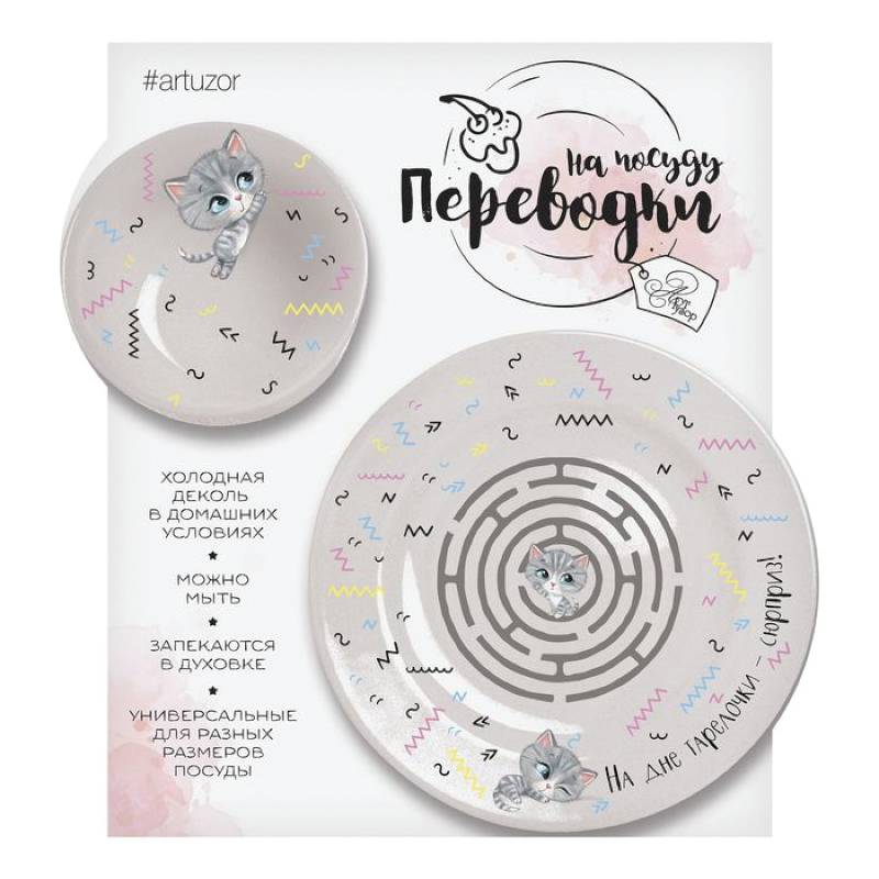 —Переводки на посуду (холодная деколь) «Накорми котика!», 17x18 см