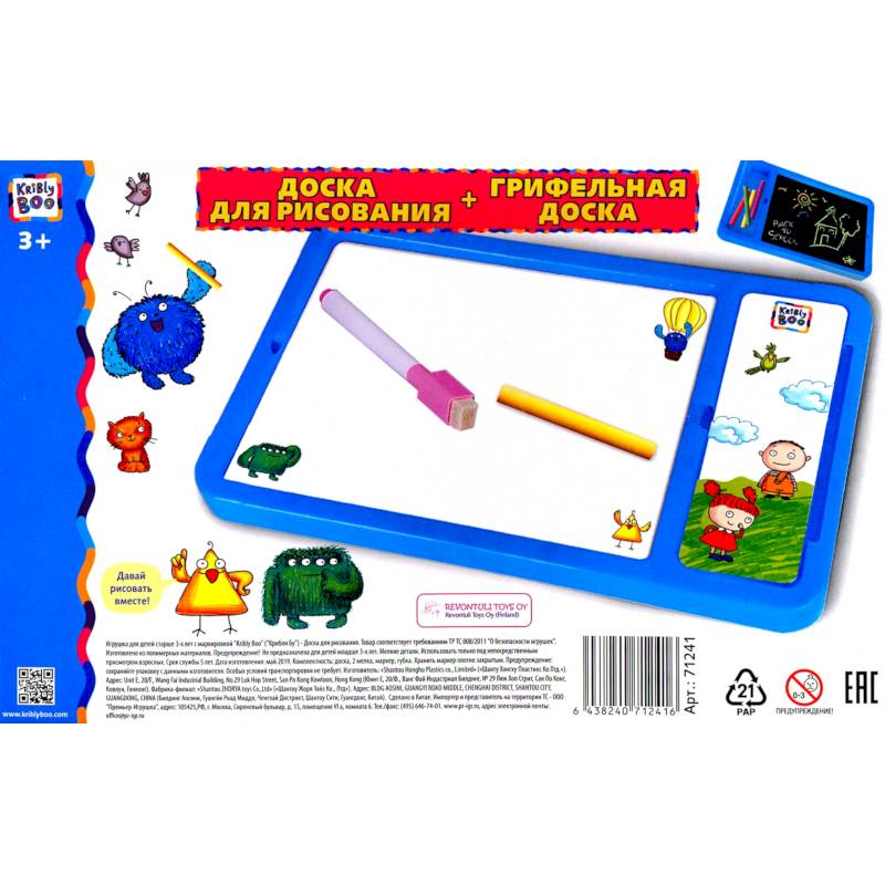 Комплектность: доска, 2 мелка, маркер, губка.
