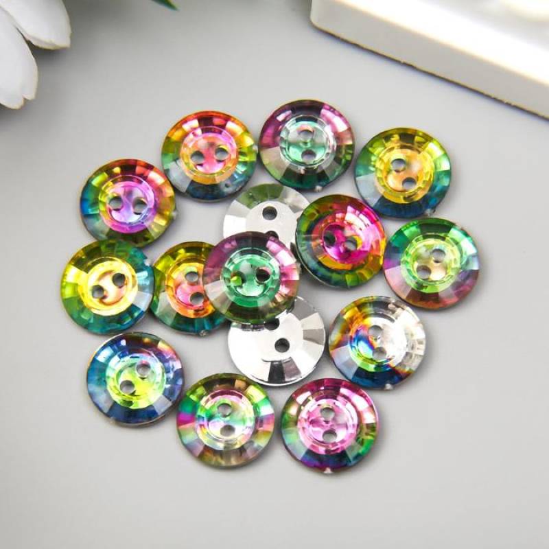Пуговицы пластик для творчества 2 прокола 'Голография круг' набор 15 шт 1,3x1,3 см