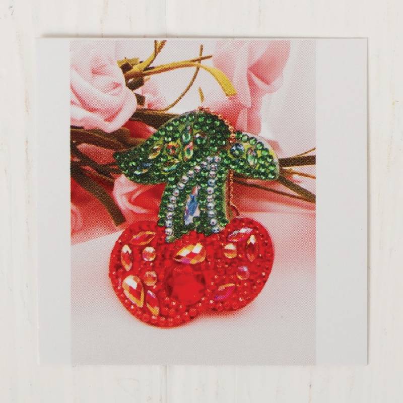 Алмазная вышивка-брелок 'Вишенки' заготовка: 7,5x6 см