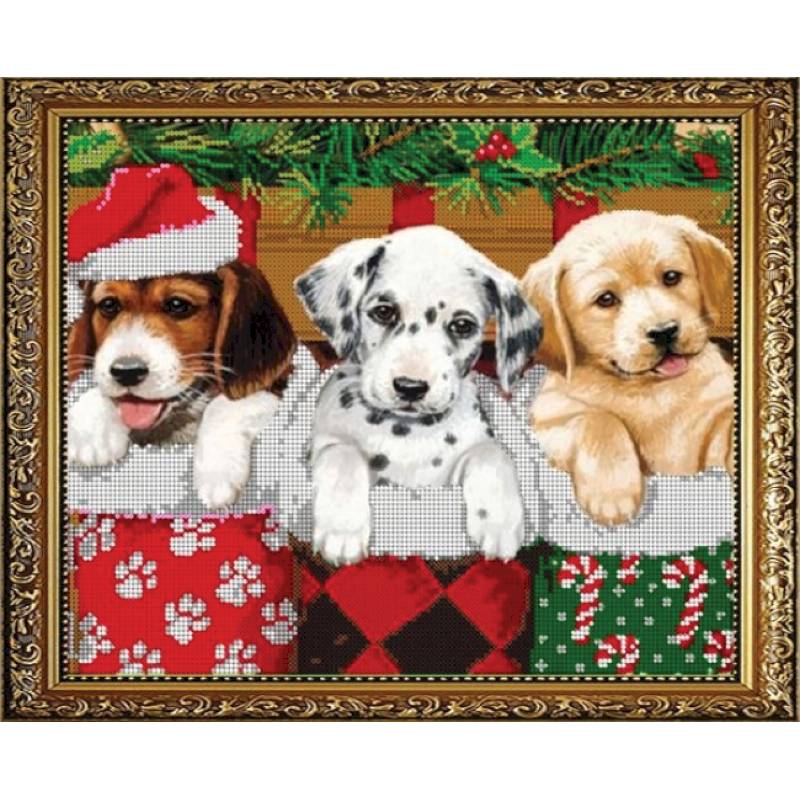 —'Новогодние щенки' 30x24см набор для вышивания чешским бисером 'Вышивочка' ВЛ-039