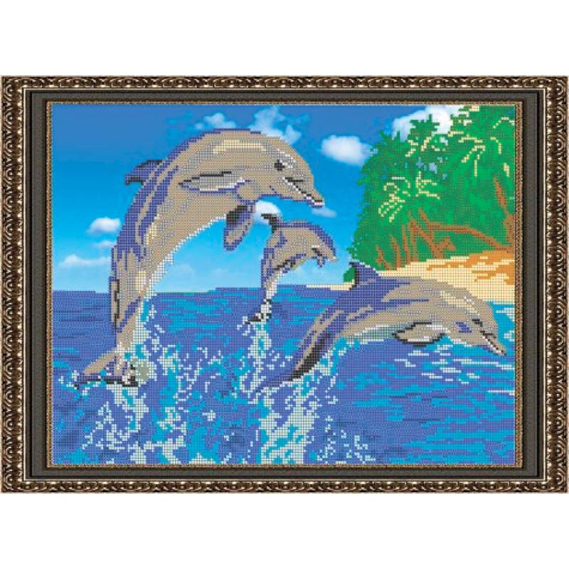 —«Светлица» набор для вышивания бисером №021 «Дельфины» бисер Чехия 35,9х26,4см