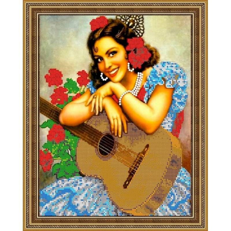 «Светлица» набор для вышивания бисером №311 «Девушка с гитарой» бисер Чехия 24*30 см.