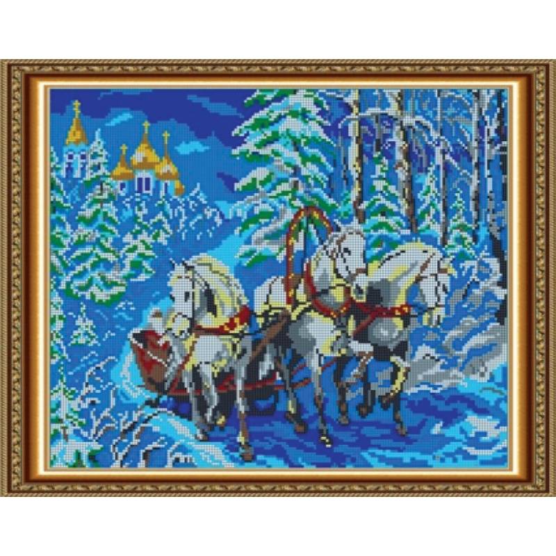 —«Светлица» набор для вышивания бисером №551П «Тройка лошадей» бисер Чехия 30x38 см