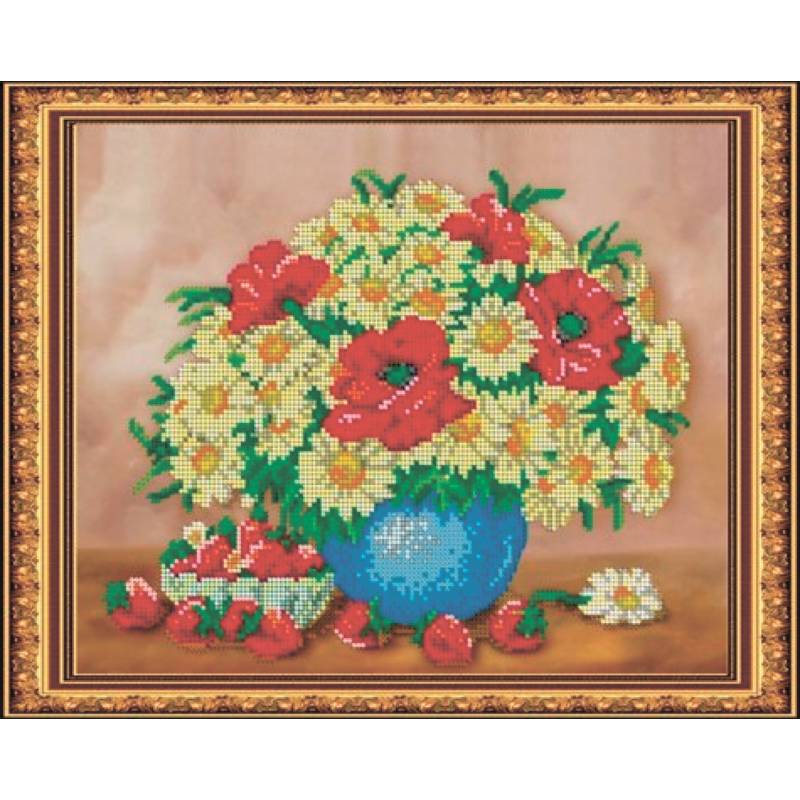 'Весенний букет с клубникой' 30x24см набор на атласе для вышивания чешским бисером 'Вышивочка' в коробке ВЛ-003