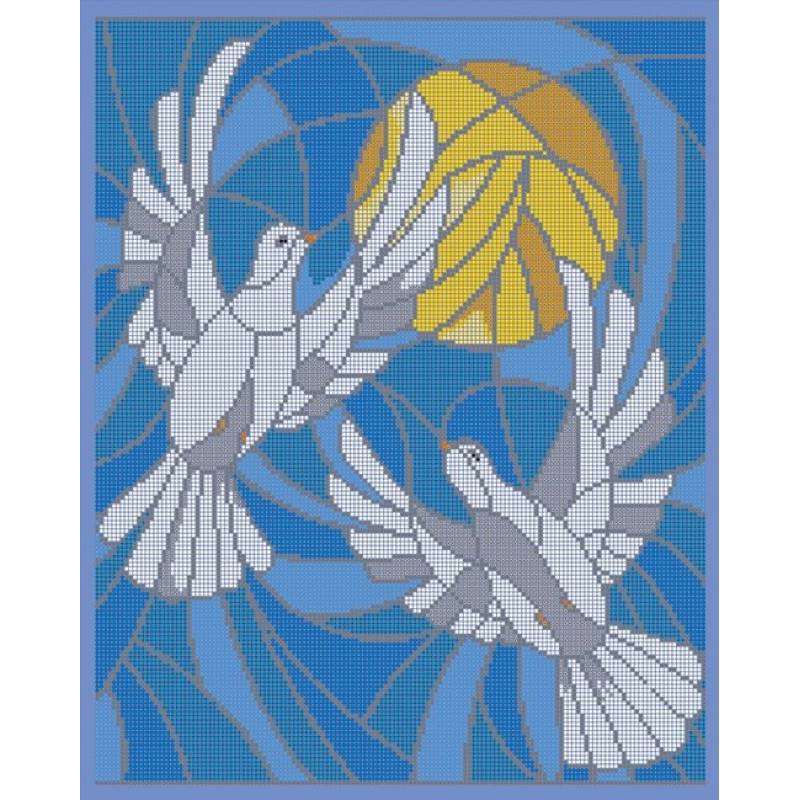 —'Витражные голуби' 30x38см набор для вышивания чешским бисером 'Вышивочка' ВЛ-218П