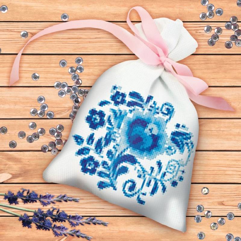Вышивка крестиком на мешочке 'Гжель'