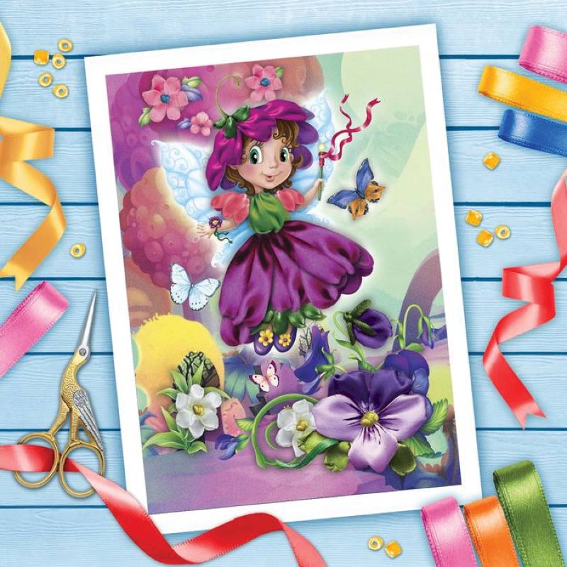 Вышивка лентами 'Поле в цвету', 25x35 см
